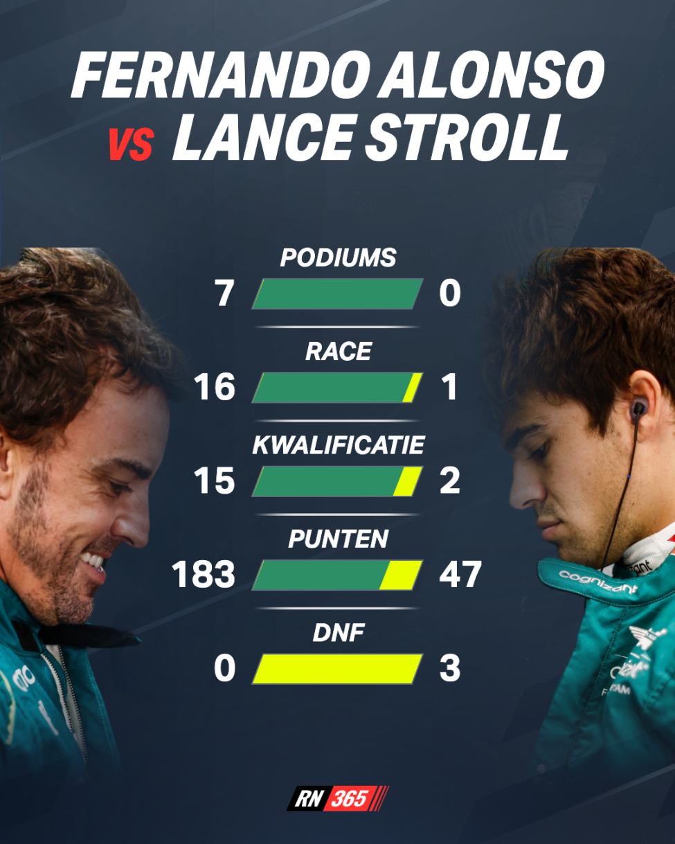 De cijfers liegen er niet om: Lance Stroll staat momenteel 136 punten achter zijn teamgenoot Fernando Alonso. Daarnaast wist Alonso - in identiek dezelfde auto - al zeven keer op het podium te eindigen dit seizoen, terwijl Strolls beste resultaat een vierde plaats is.