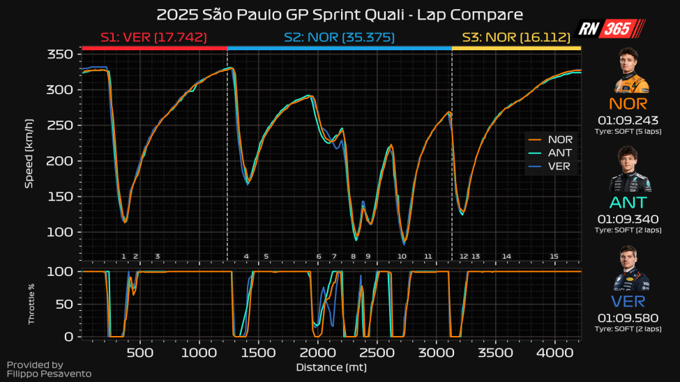 Maar waar verloor Verstappen de tijd? Een simpele blik op de sectortijden leert ons dat sector twee het grote manco was. De tweede sector is het bochtige gedeelte op Interlagos, waarbij het veel op- en terugschakelen geblazen is. Het is dus duidelijk dat de Red Bull RB21 daar niet bij gebaad was. Adviseur Helmut Marko trok dan ook een passende, maar even pijnlijke conclusie bij Sky DE, toen hem werd gevraagd waar het aan ontbrak.