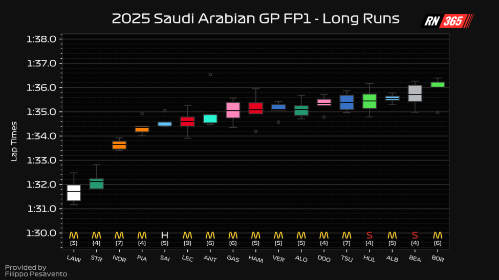 Bekijk hieronder de (beperkte) data van de longrun uit de eerste vrije training!
