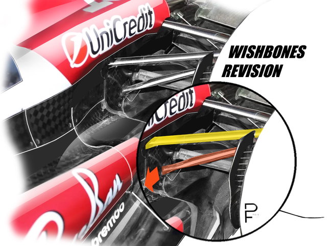 Het zijn innovaties die de dynamische respons van de achteras moeten veranderen. In wezen wordt er zoveel mogelijk geprobeerd om de werking van de McLaren-vering na te bootsen, hoewel die gebaseerd is op een compleet ander concept. Aan de achterkant gebruikt McLaren een push rod, terwijl Ferrari juist een pull rod inzet. Toch kunnen de kenmerken van de McLaren-demping worden overgenomen. De verwachting is dat de nieuwe versie tijdens de Grand Prix van Oostenrijk wordt geïntroduceerd.
