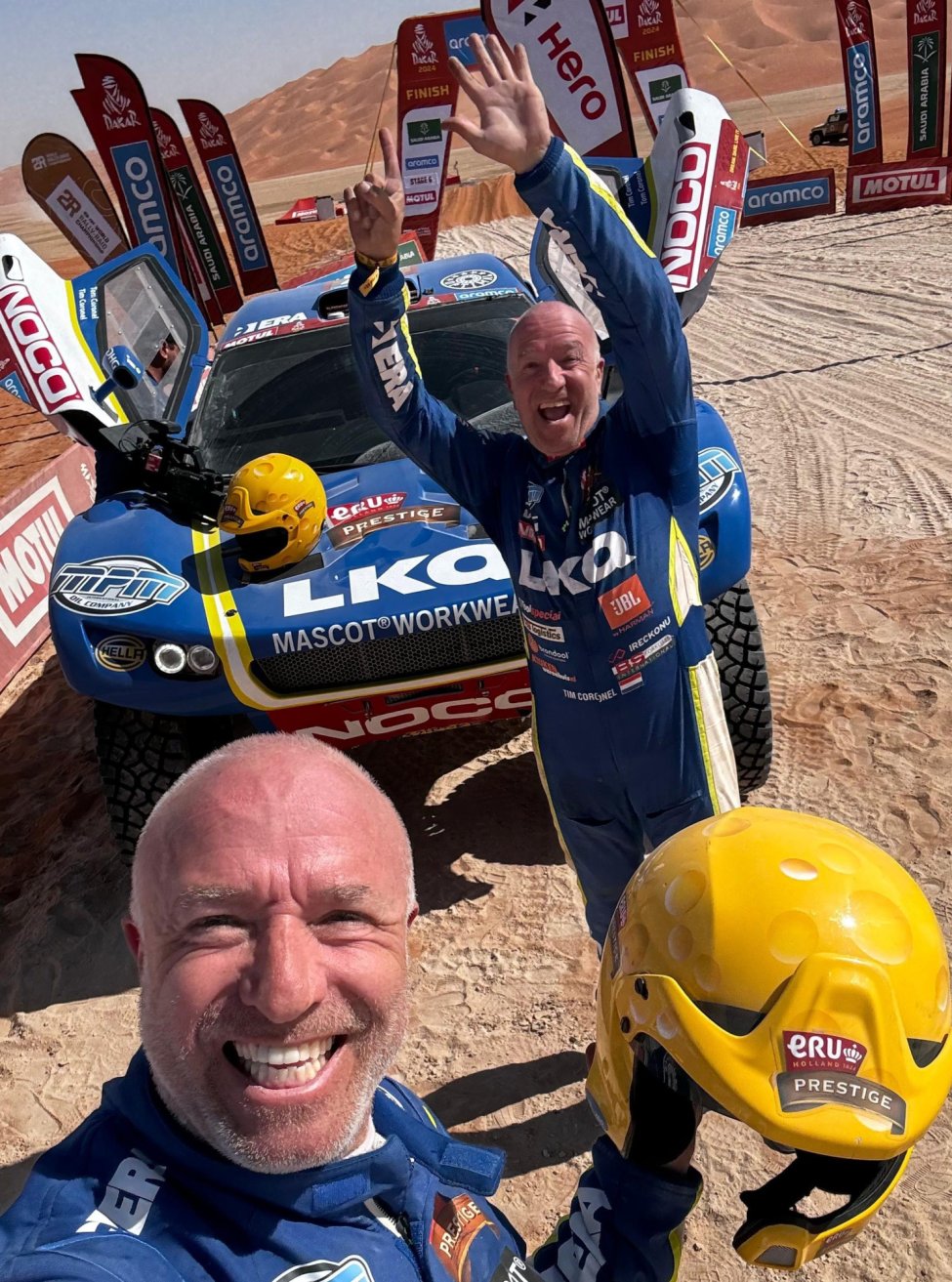 De problemen waren echter nog niet voorbij. "We stonden al klaar met de sleepkabel, dus we kregen de auto eruit, maar het bodywork lag nog even vierhonderd meter verderop. Dat moesten we nog even ophalen en erop zetten. Uiteindelijk zijn we de duinen opgeklommen met Tim en het bodywork en zijn we weer verder gegaan met samengeknepen billen, omdat de startmotor stuk was. Als de motor afslaat en je de startmotor niet kan gebruiken, kan je ook de jacks niet gebruiken. Dan ben je de lul. Uiteindelijk hadden we het goed voor elkaar en goed geregeld. Wauw... wat een dagen. The Empty Quarter, we did it! Ik ga douchen en scheren. Ik ben er even helemaal klaar mee."