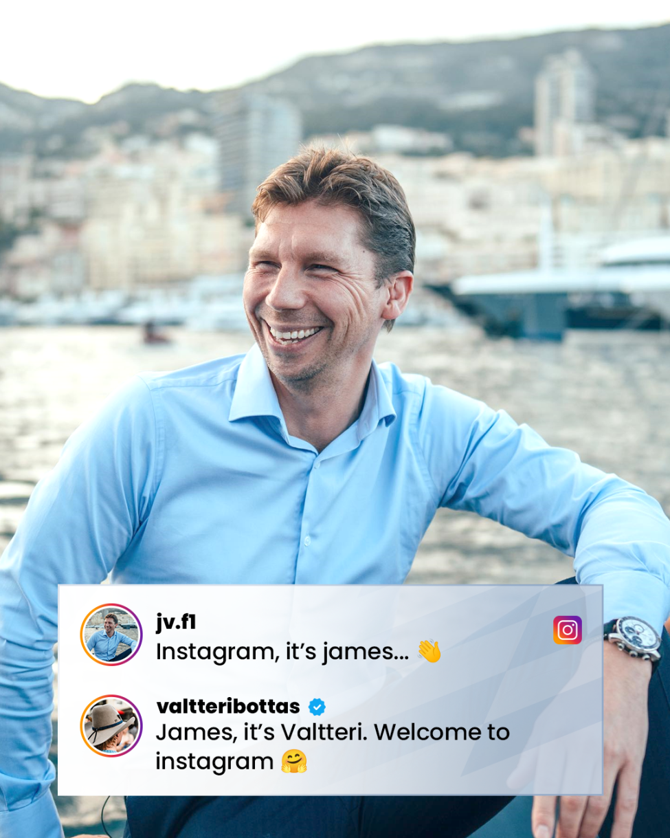 De reactie van Bottas onder het eerste de beste bericht van Vowles luidt als volgt: "James, it's Valtteri. Welcome to Instagram."