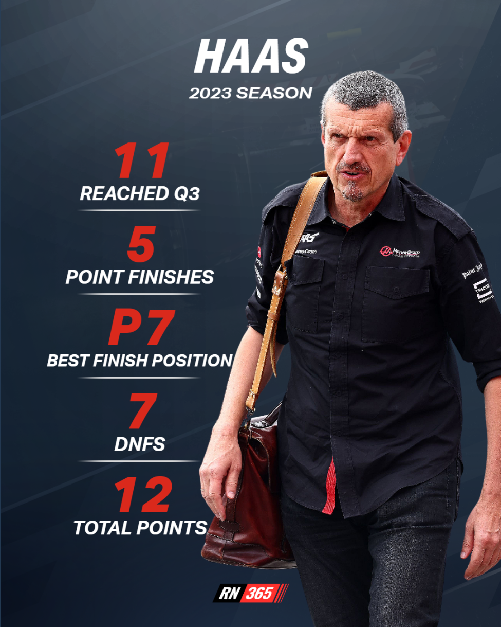Teambaas Guenther Steiner heeft weer een seizoen achter de rug waarin hij als laatste eindigde in het constructeurskampioenschap. De neerwaartse trend van Haas houdt zo aan, want het team eindigde nog op de vijfde plaats in 2018. Na de voorwaartse stapjes in 2022 zijn het team en Steiner weer terug bij af, nu ze de bolide voor 2024 bouwen.