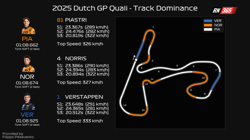 Voor de kwalificatie in Zandvoort waren de verwachtingen bij Red Bull niet hooggespannen. Max Verstappen gaf in de derde vrije training maar liefst negen tienden toe op McLaren en dacht zelf dat een plek in de top vijf al lastig zou worden. De viervoudig wereldkampioen had flink last van onderstuur, vooral in de tweede sector. McLaren was daar een stuk sneller door de relatief lange doordraaiers.