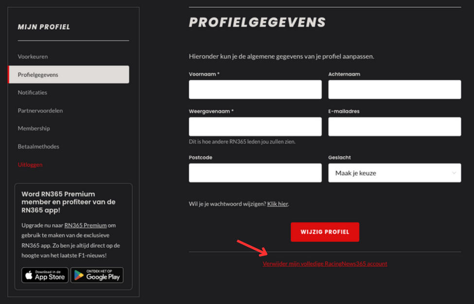 Volg de onderstaande eenvoudige stappen om je profiel te verwijderen van onze website.
