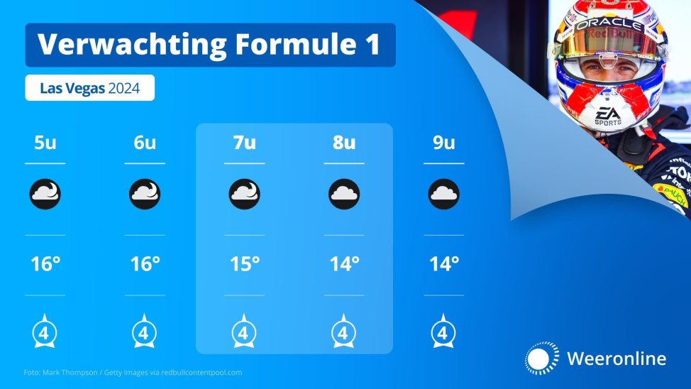 Zo fris als tijdens de kwalificatie zal het echter niet zijn. Dit komt omdat het overdag warmer is geweest dan weleer en er wolkenvelden binnen drijven na zonsondergang. Dat voorkomt een razendsnelle afname van de temperatuur. Waarschijnlijk is het tijdens de race rond de 14 graden Celsius. Mocht de bewolking wat minder dik zijn, kan het een paar graden verder afkoelen.