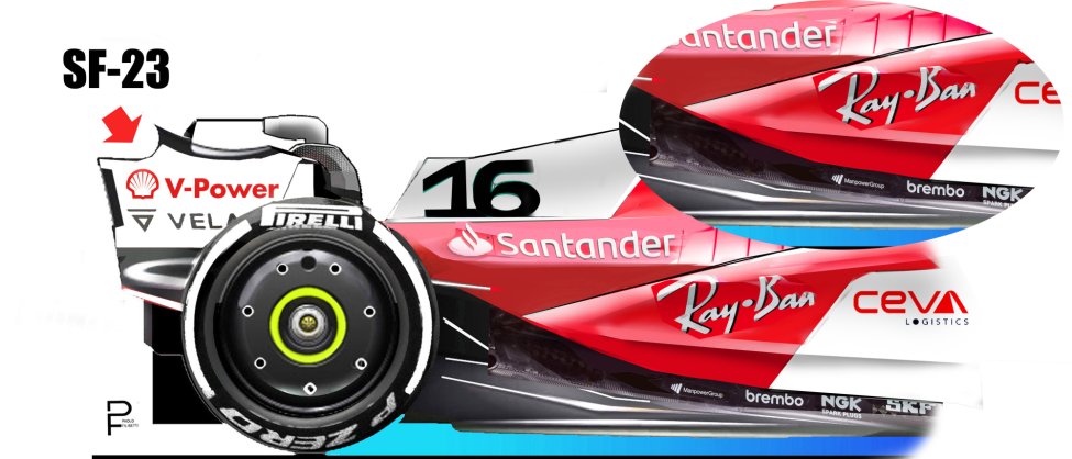 De zwakke punten van de SF-23 waren al duidelijk tijdens de wintertests in Bahrein, waarna de engineers van de Scuderia kozen voor een koerswijziging in het aerodynamische concept. De engineers realiseerden zich dat de structurele beperkingen van het project te maken hadden met het chassis, of beter gezegd, de crashstructuur die de coureurs moet beschermen tegen zijdelingse impacts, de radiatoren, de elektronische controle-eenheden, en de afmetingen van de versnellingsbak, die het ontwerp van de diffuser hadden beperkt.