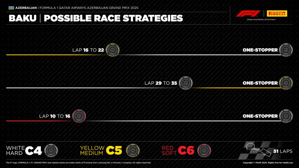 Bandenleverancier Pirelli bracht zachtere banden mee voor de Formule 1 Grand Prix van Azerbeidzjan. De veelbesproken zachtste band van het spectrum, de C6, werd weer eens van stal gehaald, maar daar rijden de meeste coureurs liever niet op. Zeker tijdens de race lijkt het een band die we niet vaak terug zullen zien, en dus lijken de mediums en harde banden de aangewezen compounds te zijn voor de 51 rondjes over het Baku City Circuit.