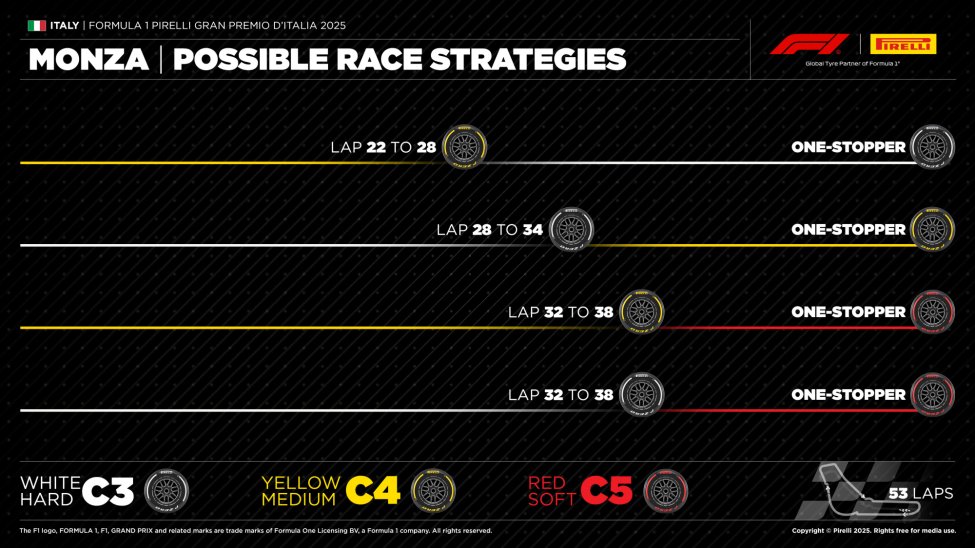 De organisatie van het circuit van Monza heeft vorig jaar nieuw asfalt laten leggen. Dit asfalt zorgt voor veel grip, terwijl de banden het niet al te zwaar krijgen. Dat bevestigen ook de simulaties van Pirelli, en zo komt de bandenfabrikant tot de conclusie dat een eenstopper mogelijk de beste strategische keuze zal zijn voor de Grand Prix van Italië. Dat onderstreept ook topman Mario Isola.