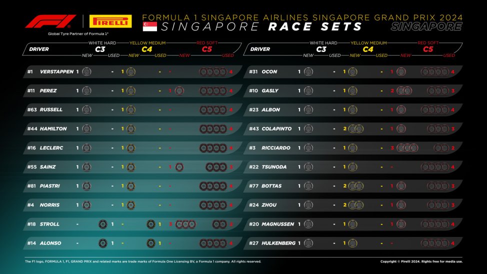 Met de ideale strategieën van Pirelli in het achterhoofd valt het vooral op dat de coureurs van de topteams maar uit twee van de drie opties kunnen kiezen. Verstappen, Lando Norris, Oscar Piastri, George Russell, Lewis Hamilton en Charles Leclerc beschikken allemaal nog over een nieuw setje medium-banden en een nieuw setje harde banden, maar hebben geen setje nieuwe zachte banden meer over. Een eenstopper met zachte banden lijkt dus geen optie voor de zes heren, gezien bandenslijtage hier een belangrijk onderwerp zal zijn en een setje zachte banden in dat opzicht niet ideaal is.