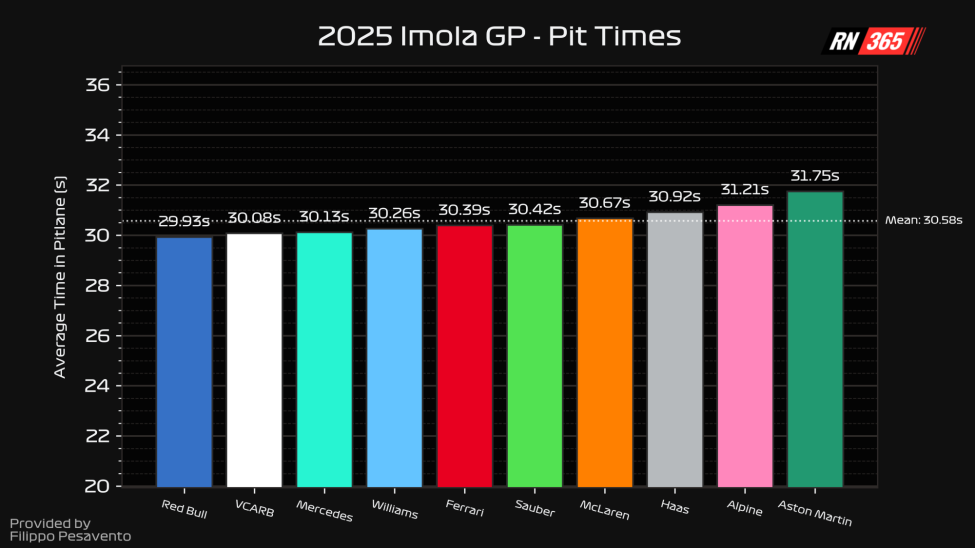 Red Bull won vanaf 2018 telkens de DHL Fastest Pitstop Award, een alternatief kampioenschap in de koningsklasse van de autosport, waarbij hetzelfde aantal punten wordt uitgedeeld voor de snelste pitstops als in een Grand Prix voor de coureurs. Red Bull moest het na de eerste zes races in 2025 echter doen met P6 met slechts 47 punten in die strijd. Na de Grand Prix van Emilia-Romagna ziet de wereld er toch iets anders uit, want Red Bull heeft het gat met de concurrentie aardig gedicht. Bovendien was Red Bull gemiddeld gezien het team dat de minste tijd in de pitstraat doorbracht.