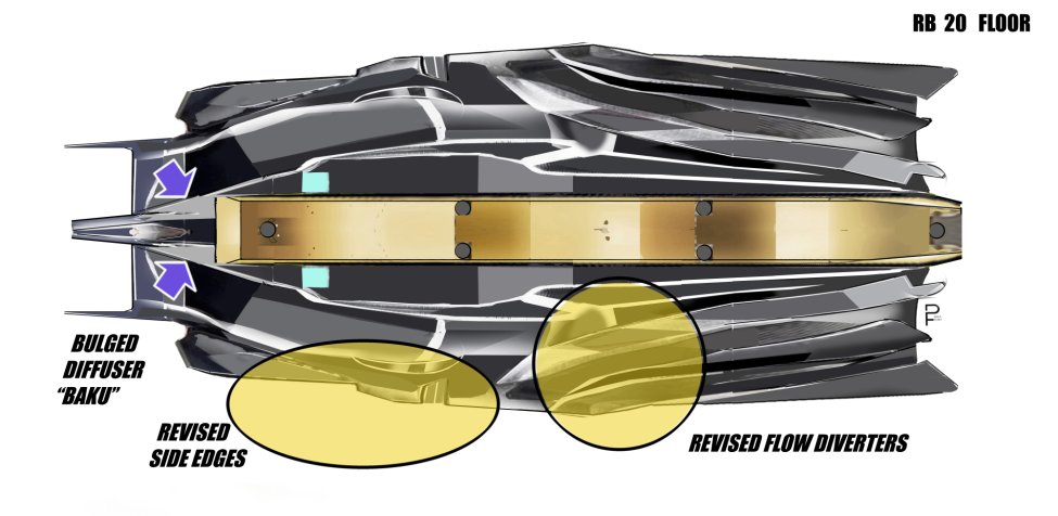 RacingNews365 heeft begrepen dat het voorste deel van de vloer wordt aangepakt. Dat zou ervoor moeten zorgen dat de druk onder de vloer, in het eerste deel van de Venturi-kanalen, verandert. Eerder werd al een 'bollere' diffuser geïntroduceerd in Azerbeidzjan. Het is moeilijk voor te stellen hoe de kromming van de stroomgeleiders en vooral het beheer van turbulentie aan de zijkant van de vloer zullen worden herzien, maar dit zijn wel de gebieden die de grootste veranderingen zullen ondergaan.