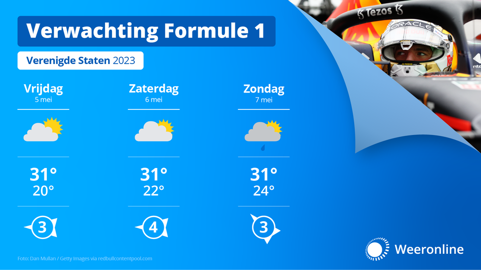De weersverwachting van RacingNews365 en WeerOnline vind je hieronder. Let op de zondag, waar een regenkans is van zo'n 50% tijdens de race. Voor de rest wordt het een zeer warm weekend in Miami, wat niet geheel als verrassing komt.