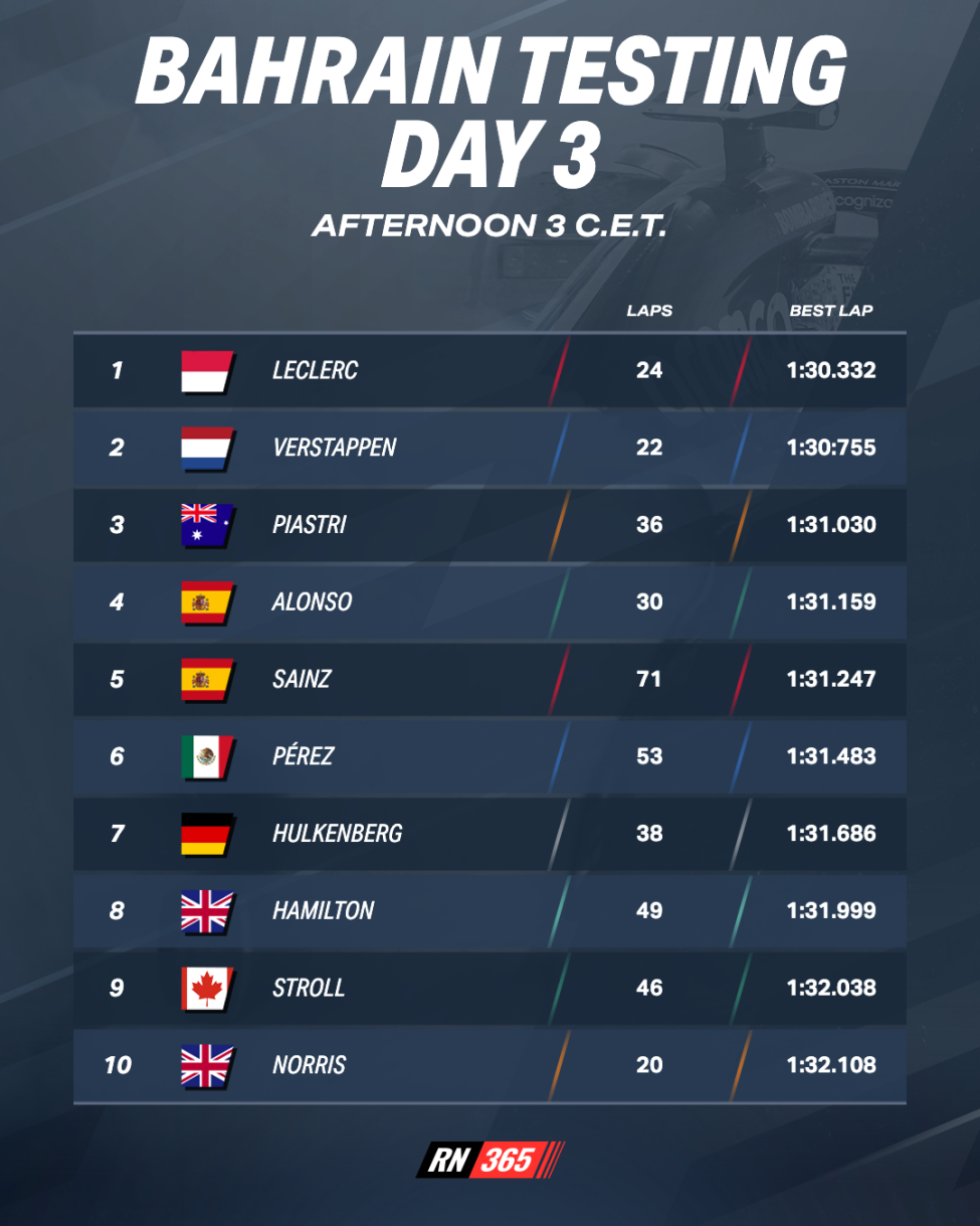 Doorgaans staat de laatste testmiddag in het teken van snellere tijden. Teams durven iets meer te laten zien en doen runs met minder brandstof, waardoor de tijden automatisch naar beneden gaan. De verwachting is dat dat de laatste twee uur niet anders zal zijn, ook omdat de omstandigheden steeds beter worden. De zon gaat onder en volgende week wordt de kwalificatie voor de Grand Prix van Bahrein immers rond deze tijd afgewerkt.