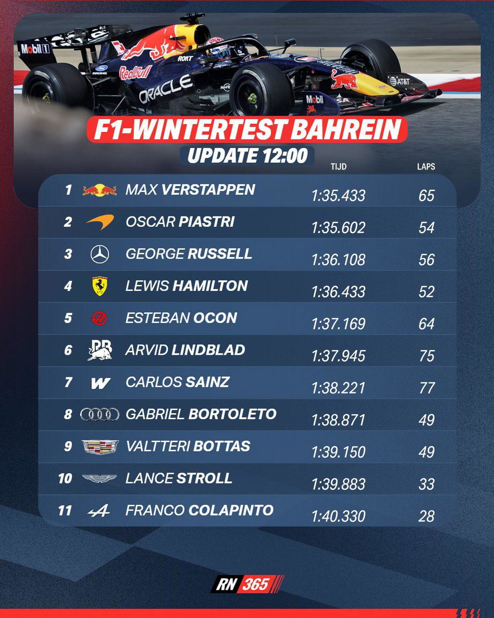 Als straks de broodjes genuttigd zijn, zien we bij een meerderheid van de teams een coureurswissel, maar sowieso niet bij Red Bull. Max Verstappen neemt de gehele dag voor zijn rekening, maar zal vast niet ontevreden aan zijn lunchpauze beginnen.