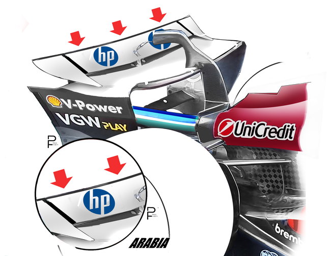 Desalniettemin is het de moeite waard om te benadrukken dat deze upgrades direct verband houden met de toepassing van minimale rijhoogtes, om de belasting te verhogen en daarmee de hoeveelheid downforce die wordt gecreëerd. De belasting die wordt geproduceerd door het gebied met lage druk onder de auto is 'gratis', omdat het geen enorme hoeveelheden luchtweerstand produceert. Daarom is in Jeddah een zo laag mogelijke rijhoogte de logische keuze om de prestaties te maximaliseren, wat weer wordt bevorderd door het gladde baanoppervlak.