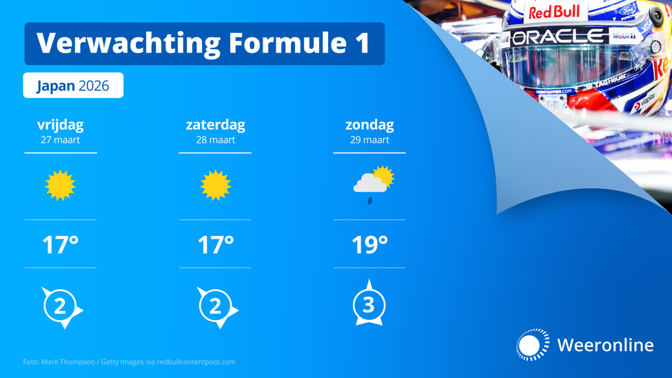 In de omgeving van het circuit lijken vervolgens ook enkele buien te ontstaan. Of zo’n bui ook over de baan trekt tijdens de race is op dit moment nog onzeker, maar het is zeker mogelijk. Momenteel ligt de kans daarop rond de 40 procent.
